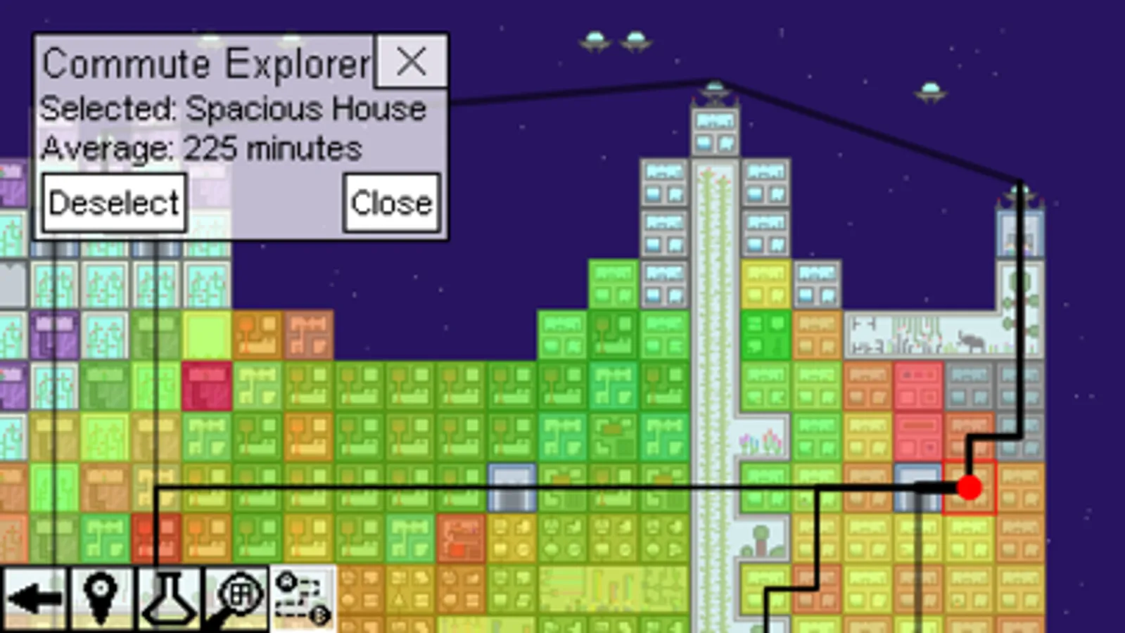 After you've built a huge city, sit back and see it in action for a while. It's like watching an ant colony! You can also follow any citizen to make this even more fun. Find the person with the craziest commute, or discover hidden details like a stargazer.