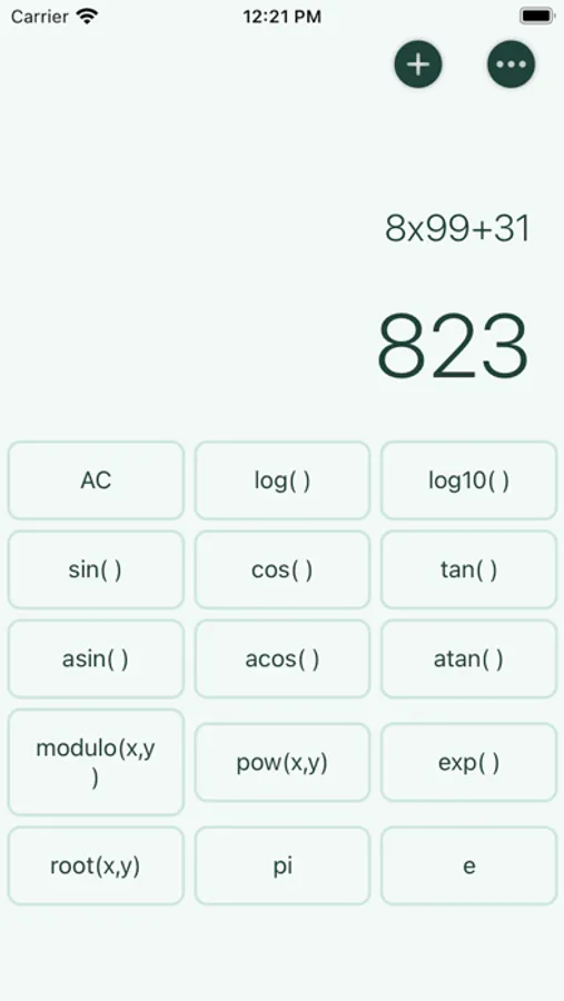 - scientific operations: trigonometric, exponential and logarithmic functions