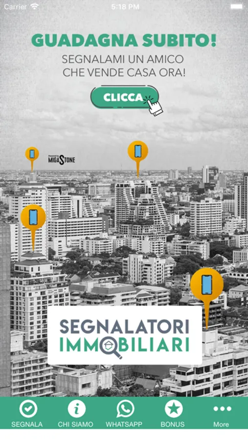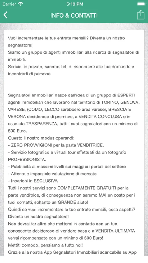 Vorresti incrementare le tue entrate in un modo poco impegnativo e molto remunerativo senza dover vendere nulla? Siamo un gruppo di agenti immobiliari e siamo alla ricerca di SEGNALATORI per Piemonte / Liguria e Lombardia, vendiamo a zero provvigione lato venditore offrendo un servizio di eccellenza con pubblicità su tutti i siti (IDEALISTA.IT/CASA.IT/IMMOBILIARE.IT/SUBITO.IT/ etc etc) e servizio fotografico professionale e gratuito. Per ogni immobile da te segnalato, acquisito e venduto ti sarà riconosciuta una provvigione a partire da € 500 per arrivare fino ad € 3.000 per ogni transazione conclusa. Non dovrai far altro che referenziarci con il tuo contatto, al resto penseremo noi. Scarica l'APP, iscriviti e comincia a guadagnare insieme a noi. Ti sarà assegnato un agente dedicato che ti aggiornerà in ogni fase, dall'acquisizione alla vendita!
