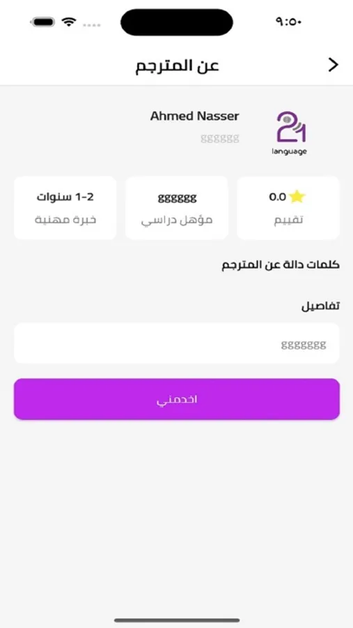 -عرض اقسام الترجمة الرئيسية والفرعية والخدمات الحصرية
