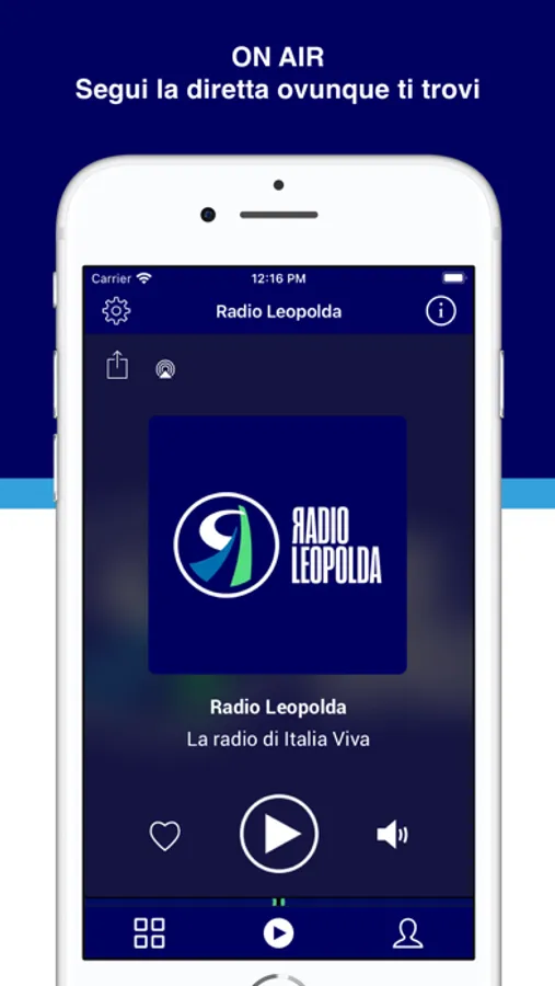 Prima versione della app di Radio Leopolda, la radio di Italia Viva.
