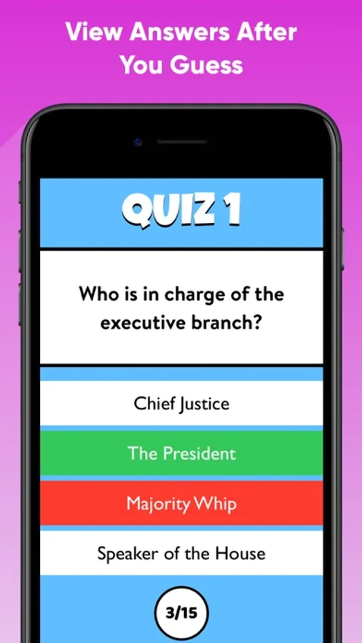 Use this app to learn the answers for the questions, which will help you pass the USCIS Citizenship Civics Test.