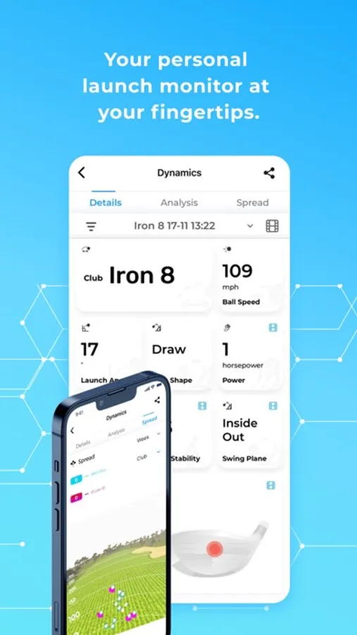 Our holistic solution helps you analyze, understand and continuously improve your golf swing. Just download the app, place the smartphone in front of you and bring your golf tech into a mind-blowing level!