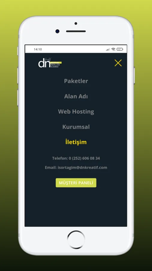 DN Kreatif Dijital Reklam Ajansı olarak müşterilerimize, sunduğumuz hizmetlerin tamamını online olarak inceleyip yönetebilecekleri bir panel hazırladık. İş Ortağım paneli sayesinde bekleyen faturalarınızı ödeyebilir, hizmetlerinizin süresini kontrol edebilir, yenileme işlemlerinizi yapabilirsiniz. Destek sistemi üzerinden 7/24 ticket oluşturabilirsiniz. Tek tuşla arama yapabilir, WhatsApp hattımıza ulaşabilirsiniz. İş Ortağım kullanıcılarına özel avantajlar ve indirim fırsatlarından yararlanabilirsiniz.