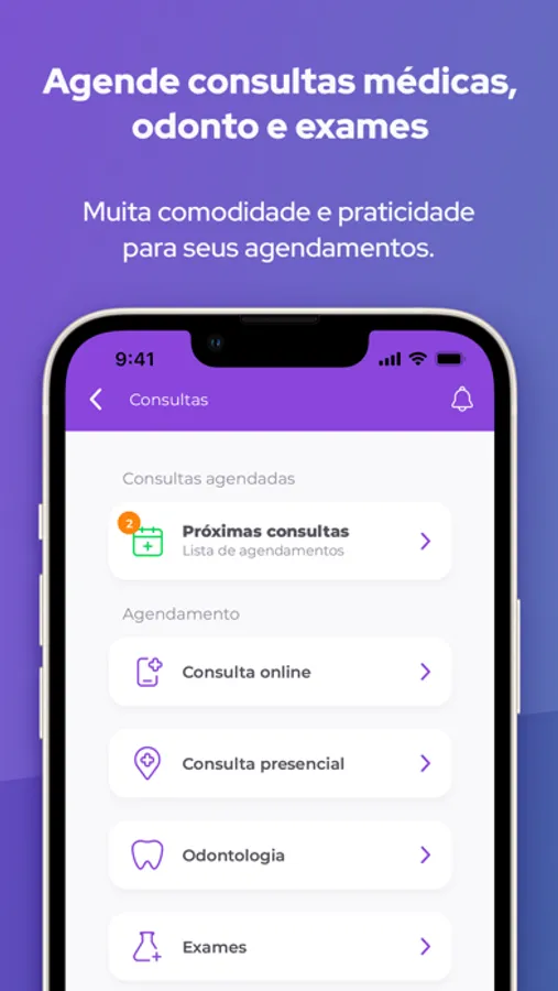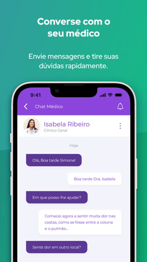 - Acesse todo o seu histórico de consultas, exames e prescrições,