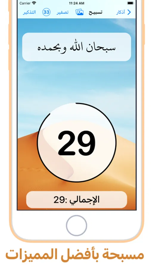 - مسبحة : عداد تسبيح واستغفار بأفضل واسهل طريقة عرض مع امكانية تغيير النص