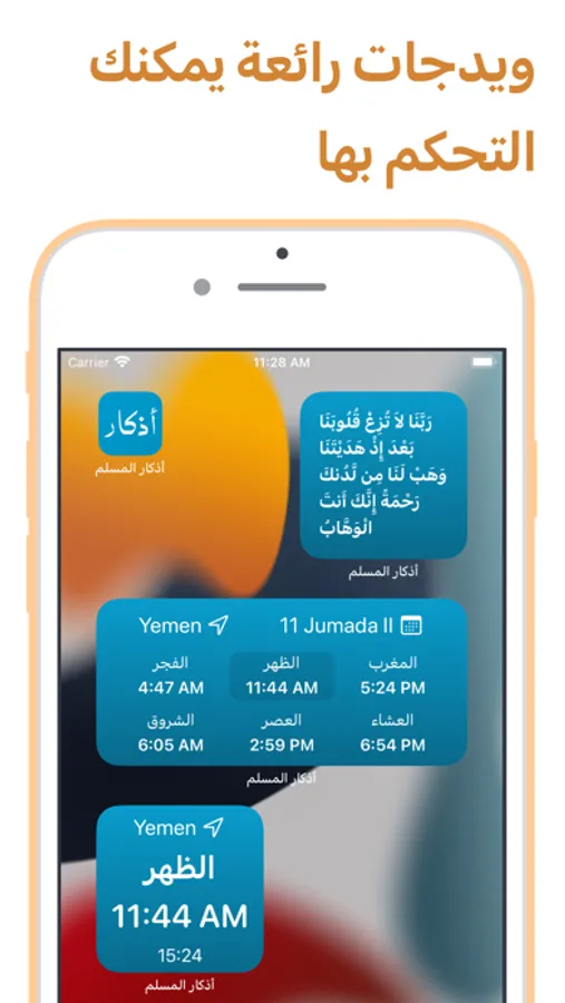 - يدعم الويدجت Widgets بتصميم رائع وجذاب يعرض لك أوقات الصلاة والصلاة القادمة و الاذكار المنوعة