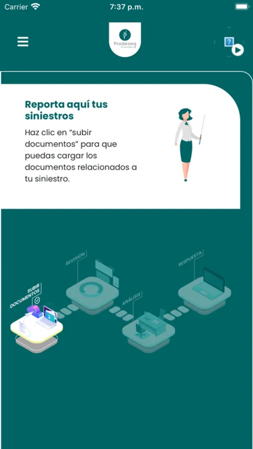 En la app móvil Prodeseg Seguros podrás reportar y gestionar tus reembolsos de siniestros de asistencia médica, así como solicitar créditos hospitalarios. Adicionalmente, podrás consultar los beneficios, coberturas y más detalles de todas las pólizas que tengas contratadas por nuestro intermedio.