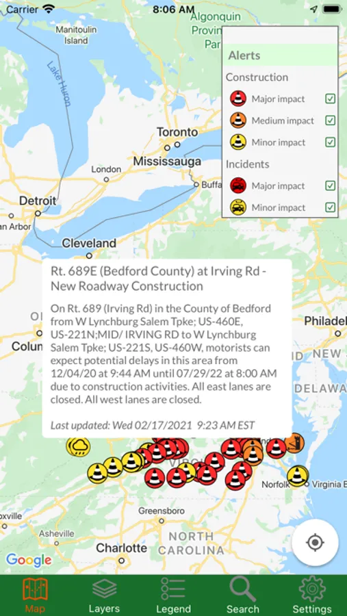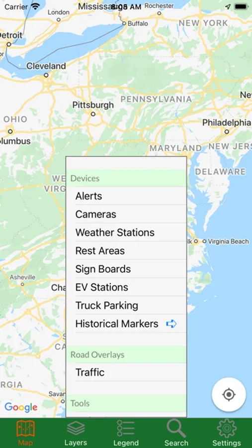 Know before you go. Whether you're a commuter or a recreational traveler, you need information about the road ahead. By accessing Virginia Department of Transportation road data, you can view traffic cameras, read alerts about construction and other road-related issues, rest areas, signboards, EV stations, and weather information. Also available is Google Traffic, just so you have all the data in one app. And now you can read all those historical markers without getting out of your car! Be smart, be informed.