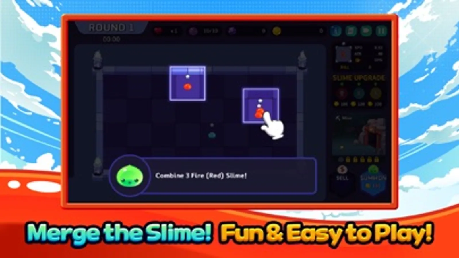 Placing the Slimes with various attributes by strategically and defeat the enemies.