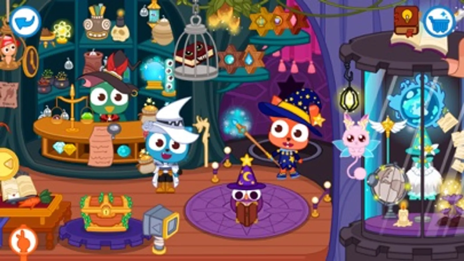 At the same time, play with other Papo World friends and create your own magic world story! Drag the characters into the scenes, drag food and clothes to them, and make up fun stories for them! There are many interesting and amazing magical items in the magic store. Play with these items and see what will happen. Travel on the train and go to different magical platforms like a platform built by ice, a platform built in forest or a platform built by sweets. Don’t forget to visit the magic school where you could see more magic, experience the life of a wizardry student and practice some magic spells. No rules, more fun!