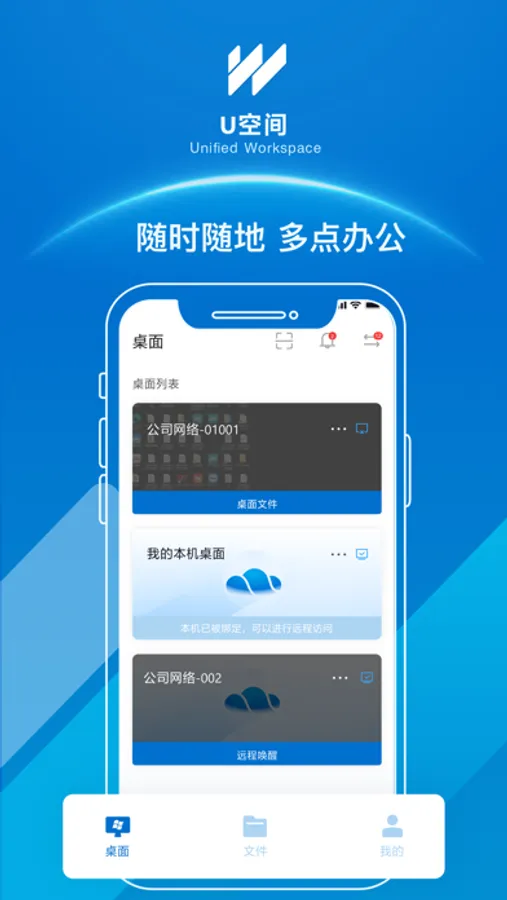 锐捷 U 空间( RG - Unified WorkSpace ,锐捷统一工作空间)简称 UWS ,它利用虚拟化技术,对用户信息统一储存和管 ,实现高效率的资源共享,是一款全面支持锐捷云办公系统的远程桌面服务软件,是一套跨地点办公的文件共享解决方案。 U 空间具备了许多与办公相关的、方便用户使用的功能,满足用户的多元化需求,真正做到随地办公、随时共享资源。