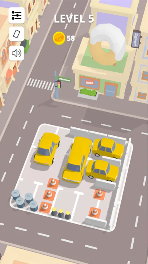 Move the cars in order to get them all out of the parking lot!