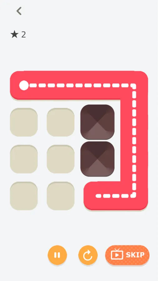 There are various objects in the stage, and you have to fill all the squares with a single stroke while avoiding the objects.