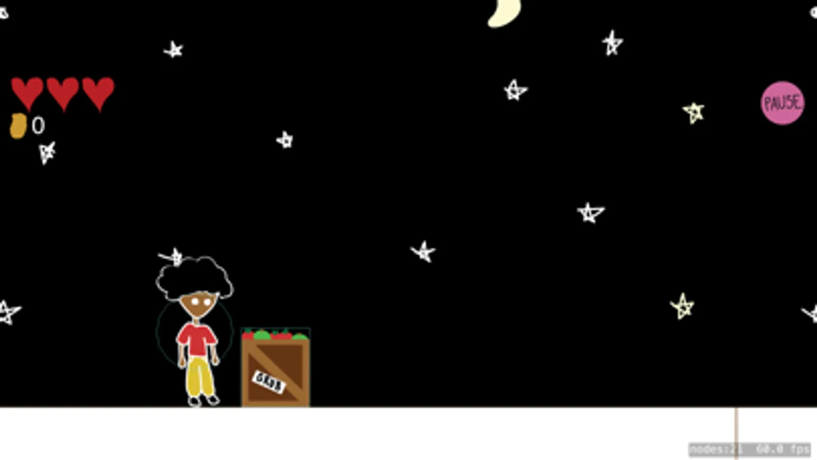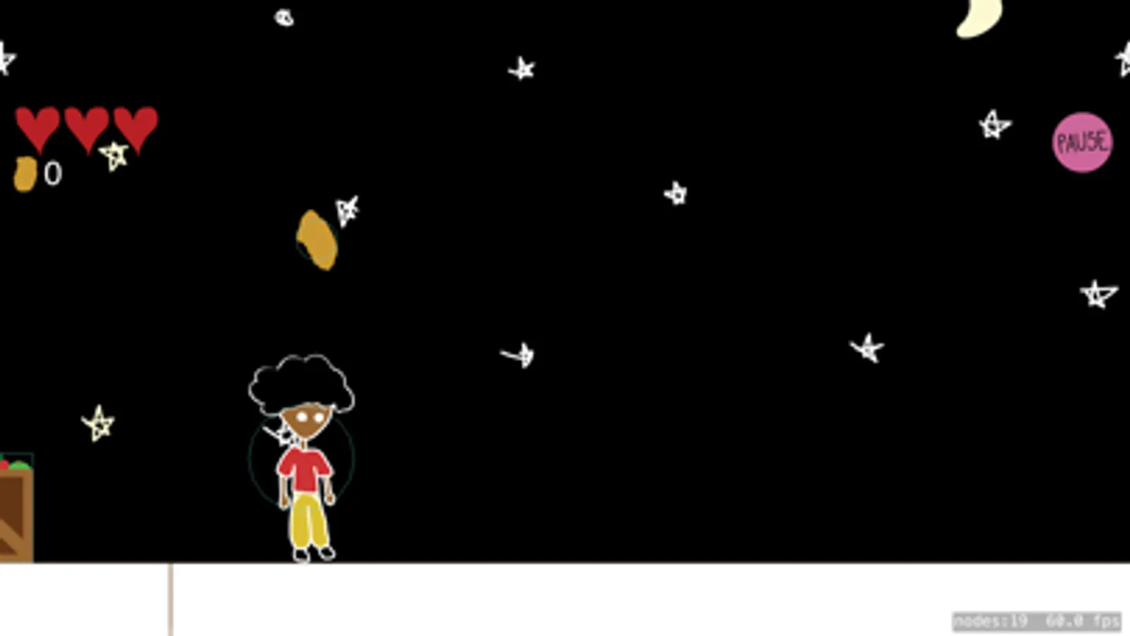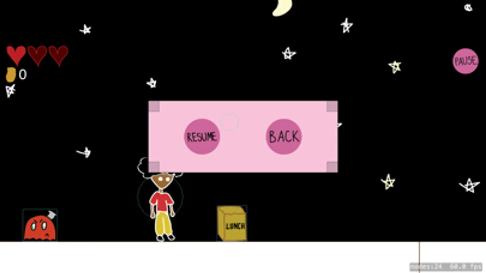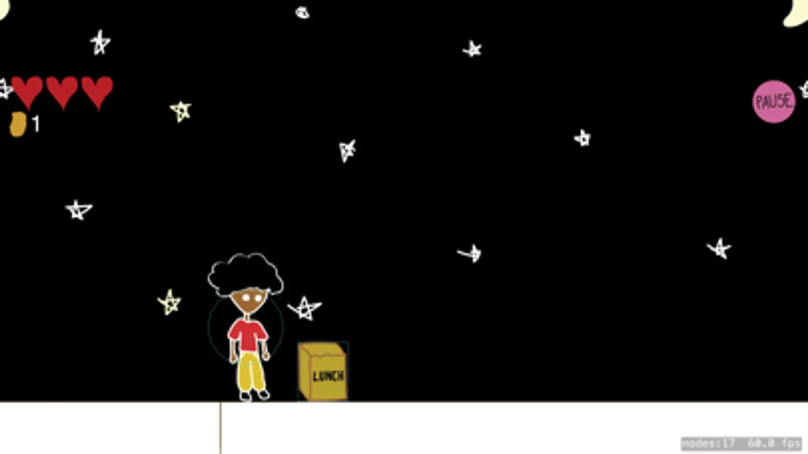 Jump over all of the obstacles and collect as many chicken nuggets as you possibly can! You get 3 lives. If you hit any of the boxes, it will cause you to lose a chicken nugget. If you hit the monsters, you will lose a life. If your character goes off the screen, the game will end. The song is called Sheister by Snoeman. Enjoy!!