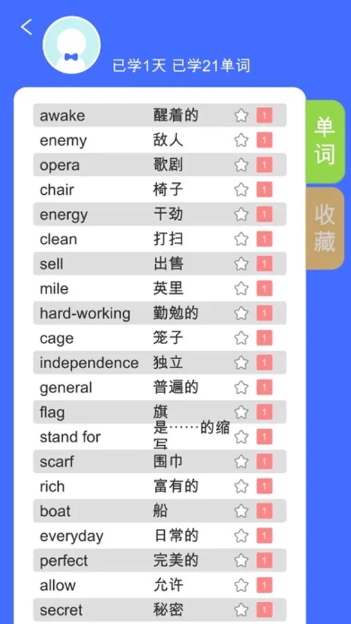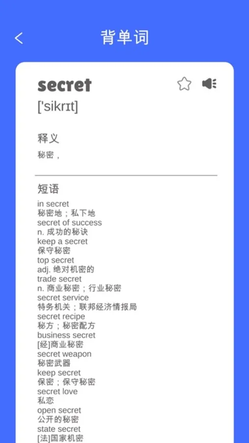 所有记下的单词都将会进入用户的学习列表里,方便用户复习以及更深的了解和认识每一个单词的意思、例句等。