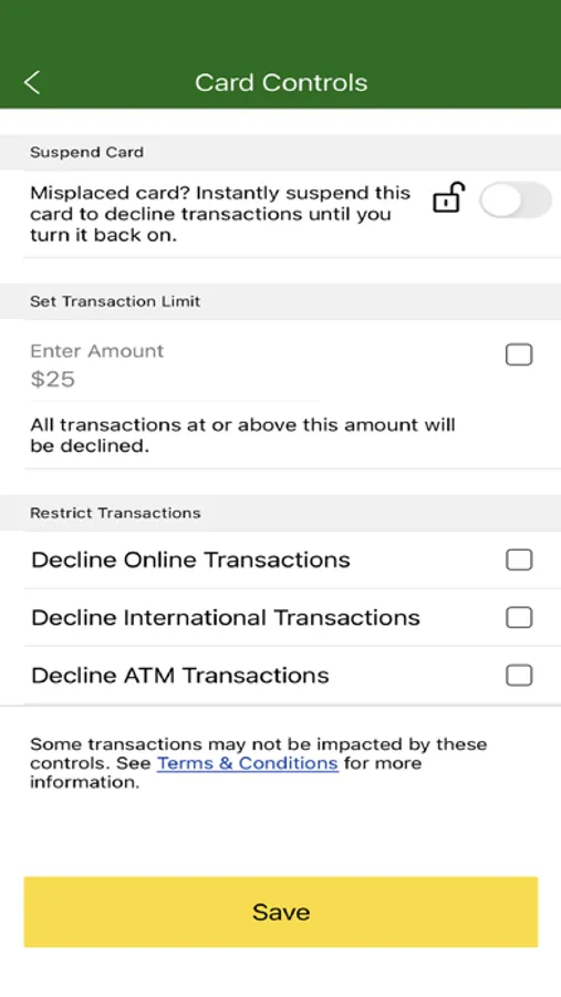 • Turn card on/off with Card Controls
