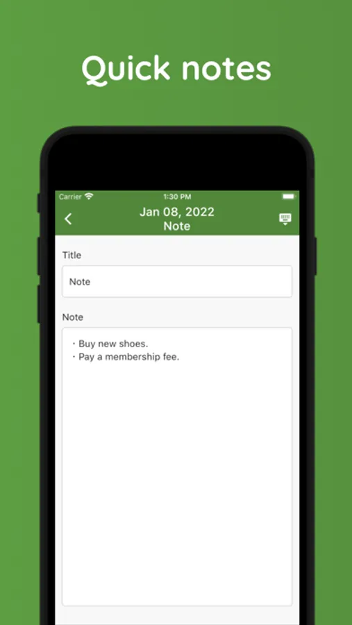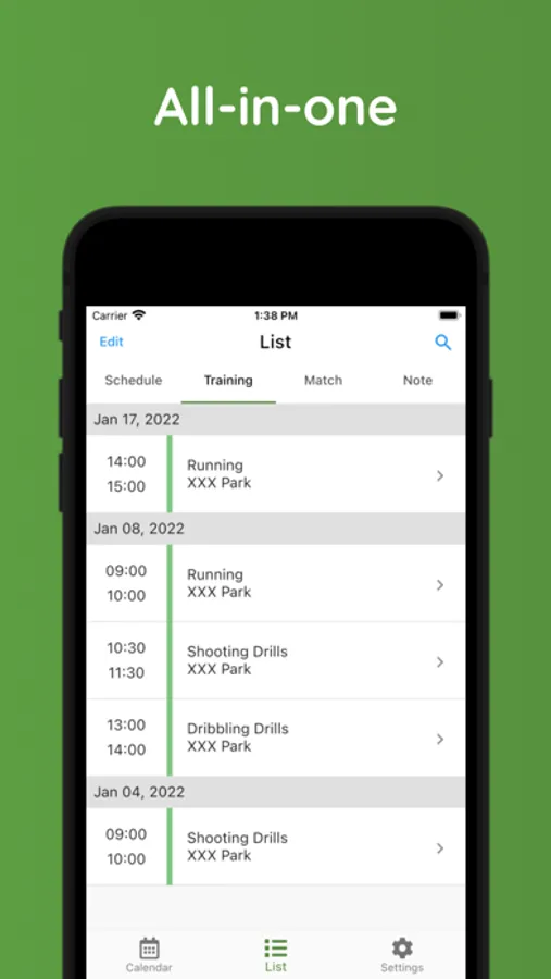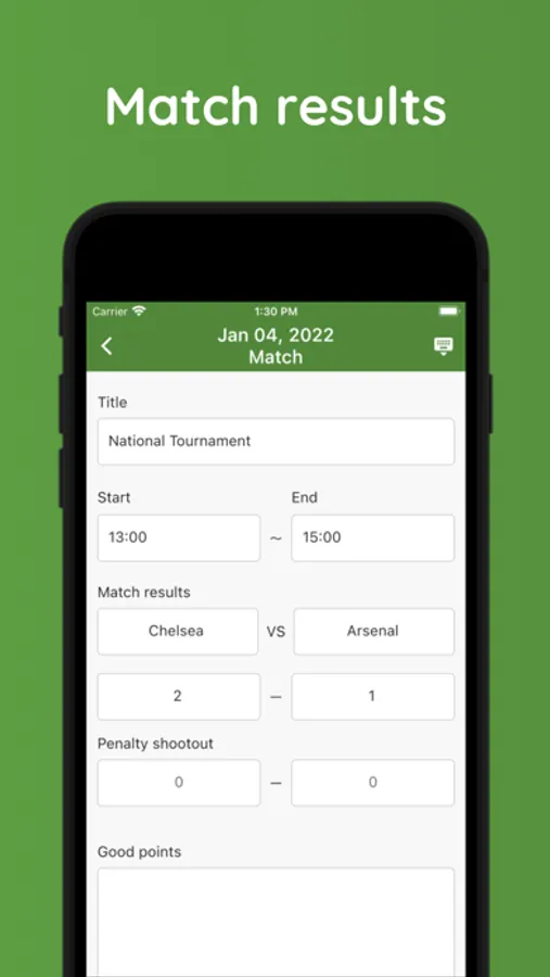 You can manage training details, match results, and small notes by date.
