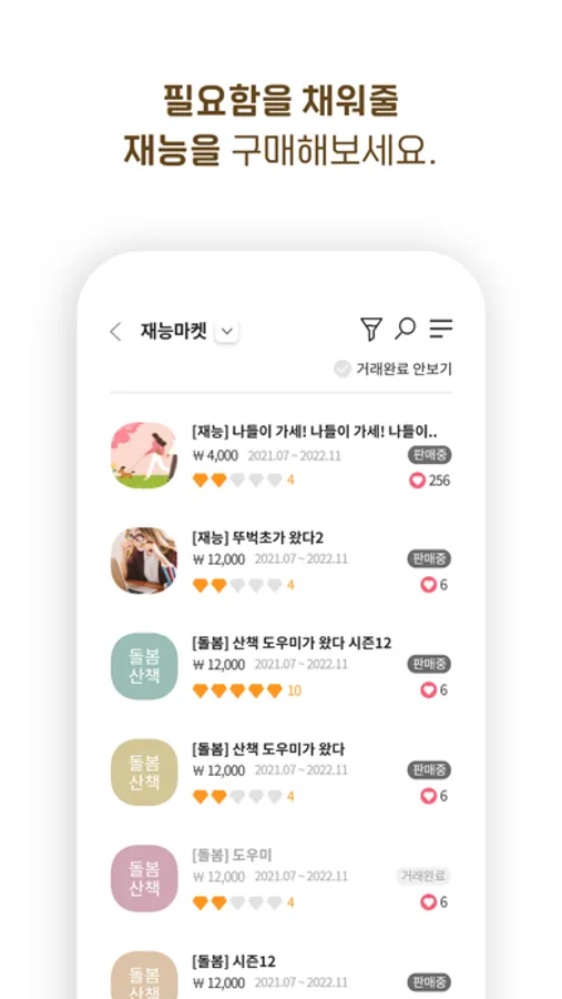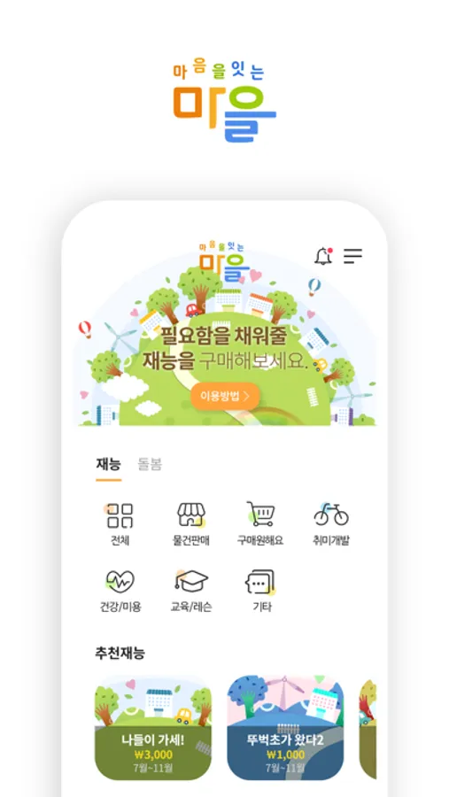 1) 판매나 재능이 필요할 땐 광장으로, 돌봄이 필요할 땐 돌봄으로 들어오세요.