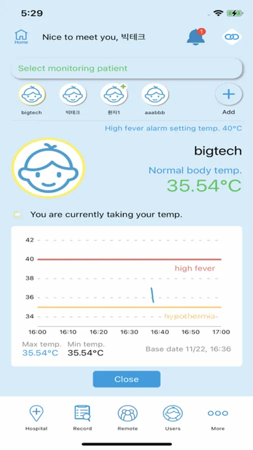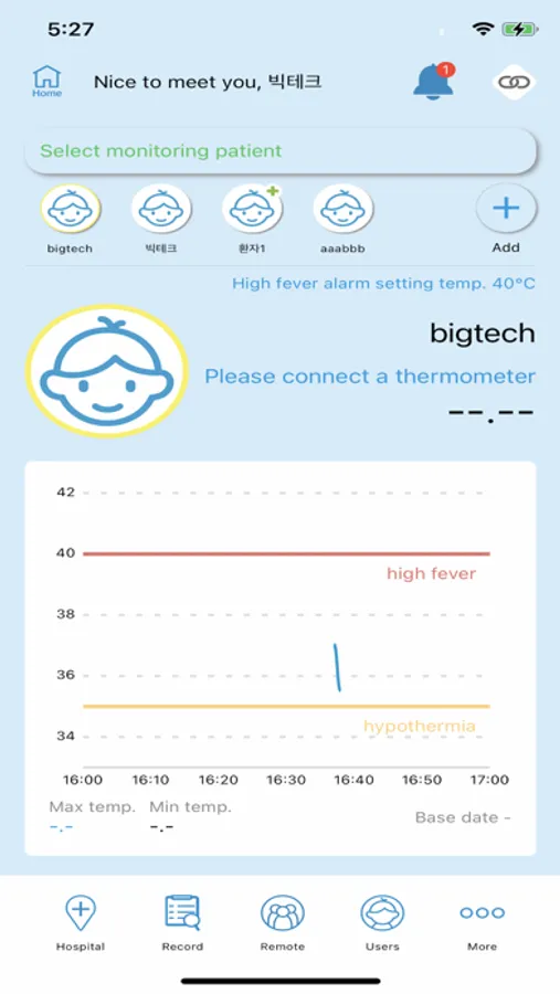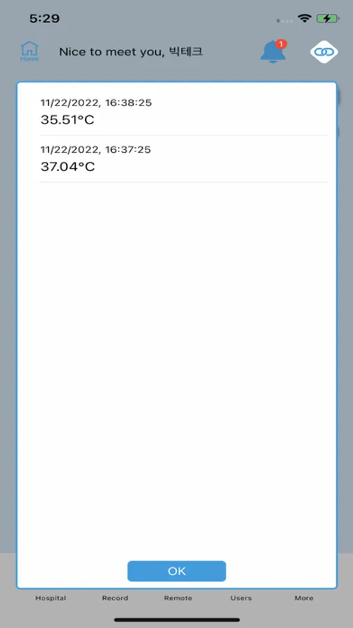 - You can check the body temperature data measured using a separate device, a Bluetooth temperature meter, in real time.