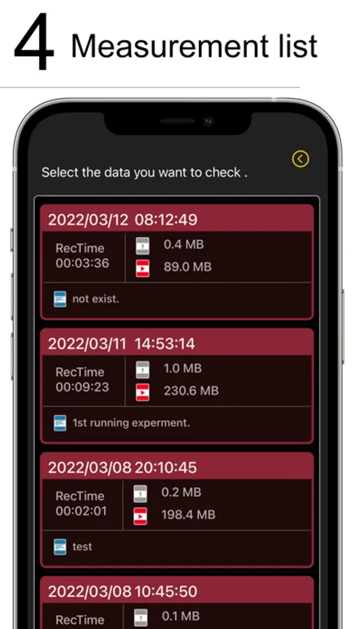• The measurement result is created a folder with the name of the measurement date and time for each measurement and is recorded as a CSV file. The recorded CSV file can be edited as it is with the iPhone app. Of course, it is possible to output external output with Mac (using Finder) and PC (iTunes).