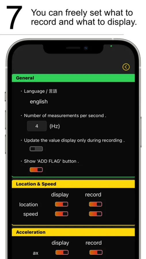 · It is possible to specify whether to display and record the sensor value. You can save battery and file capacity.