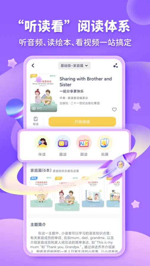 绘本、音频、视频等内容不仅能时刻陪伴小读者成长,也是实体童书的配套电子内容,满足不同阅读场景。