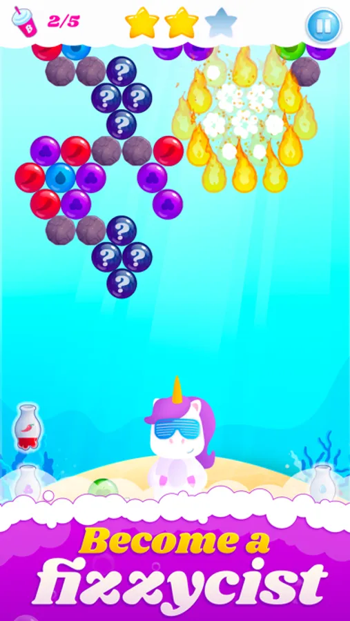 Dab your way through hundreds of levels strategically popping bubbles, spraying sodas, and collecting points! Each level gets progressively harder, but aim and precision is key. Don’t forget to use your fizzy power-ups to get you out of sticky situations.