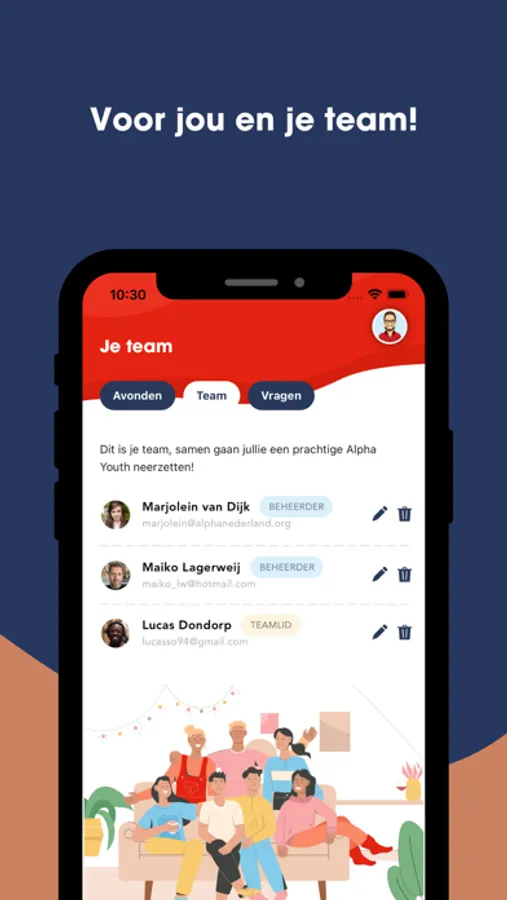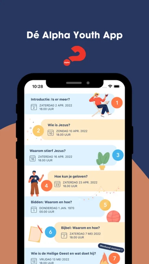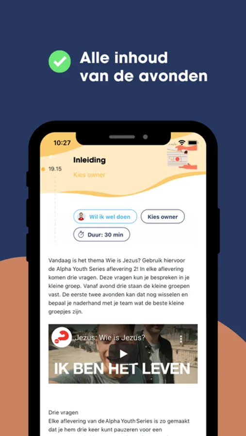 Download deze Alpha Youth App en nodig je teamleden uit! Per bijeenkomst verdeel je de taken en krijg je gratis toegang tot al het materiaal dat je per avond nodig hebt. Zoals de mooie video’s van de Alpha Youth Series en de leukste icebreakers om samen te doen met je groep. Alles wat je nodig hebt om een te gekke Alpha Youth te organiseren voor de jongeren in jouw omgeving!