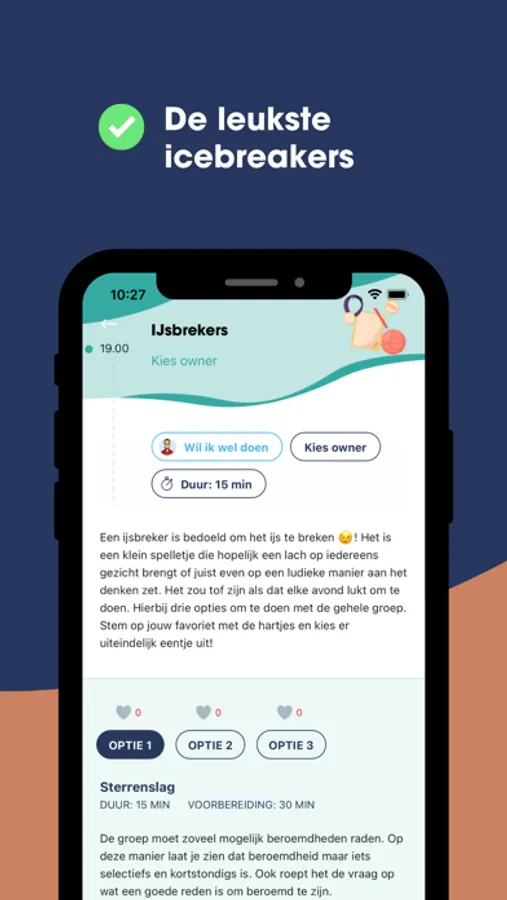 - De mogelijkheid om met je team op icebreakers te stemmen en zo een icebreaker te kiezen