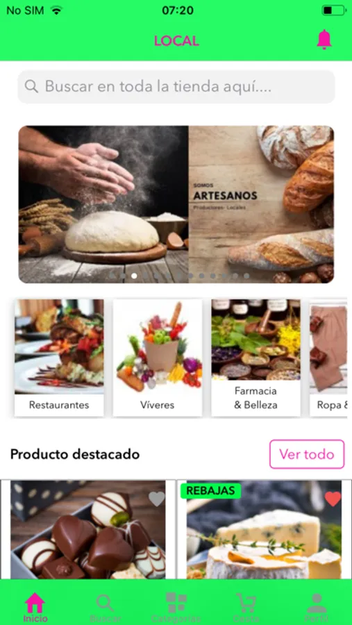 Tenemos categorías de productos muy diversos como Restaurantes, Víveres, Belleza, Ropa y Zapatos, Accesorios, Casa y Jardín, Electrónicos, Electrodomésticos, Deportes, Mascotas, Arte, Productos a la medida. Las formas de pago actuales son targetas de débito y crédito y los métodos de envío varían de acuerdo al producto (perecibles o no perecibles) y de acuerdo al vendedor; si éste utiliza nuestros LOCALchopers o sus propios métodos de envío.