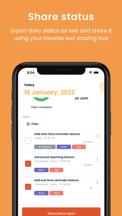 ClockIn is a simple and easy to use "to-do" list app where you can plan & execute your working hours better by creating tasks, managing them and keeping track of tasks completed.