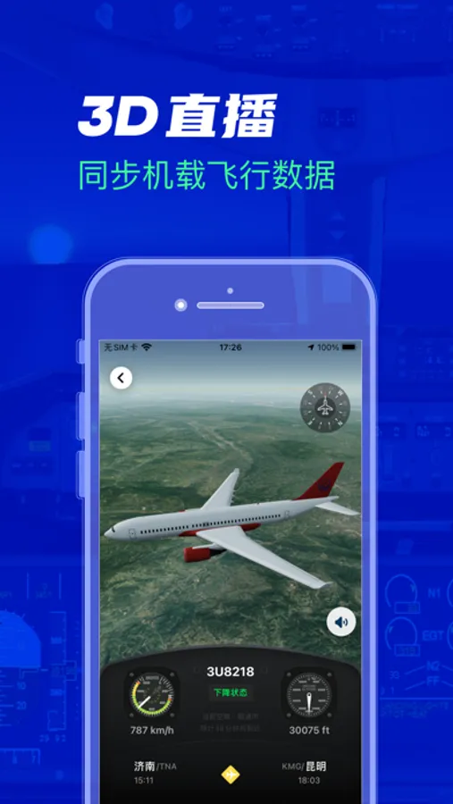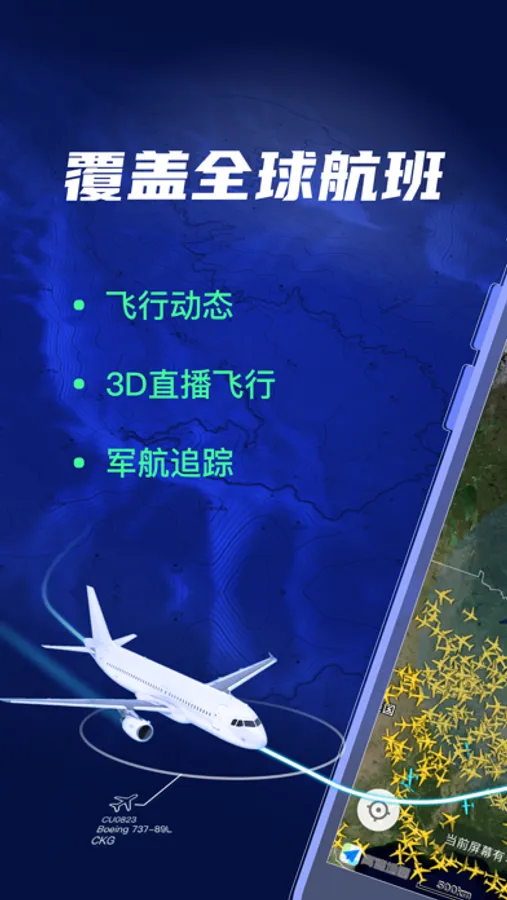 1. 【3D直播】 全方位模拟展示航班飞行轨迹,地图航线动态掌上准点播报,在手机里领略全球在飞航班的飞行风采