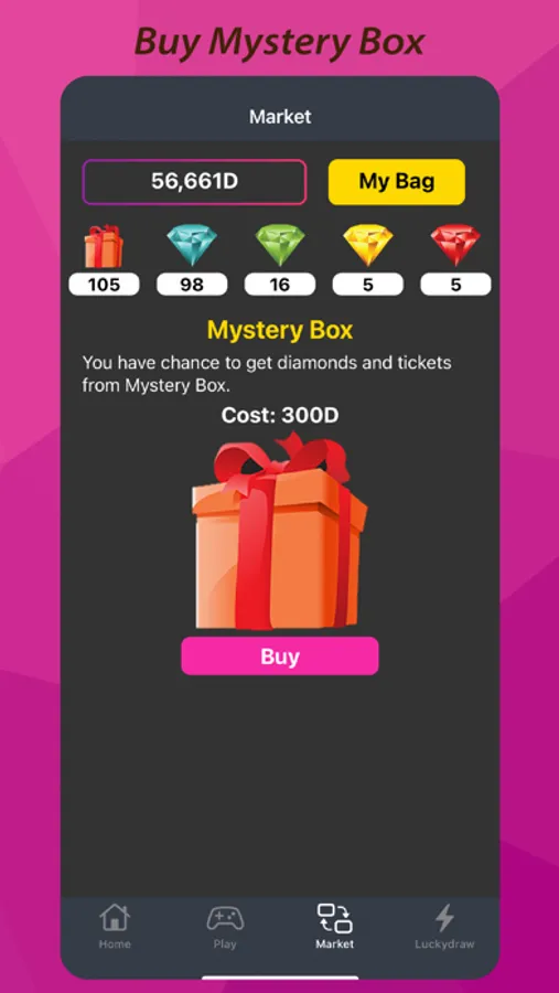 There are game items, i.e. Mystery Box can be purchased from Market. After purchasing Mystery Boxes, you can open and get different diamonds or ticket. By making use of the diamonds you can multiply recharging power by up to 10 times!