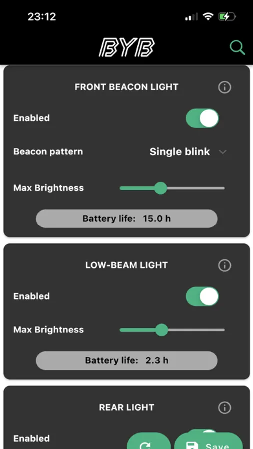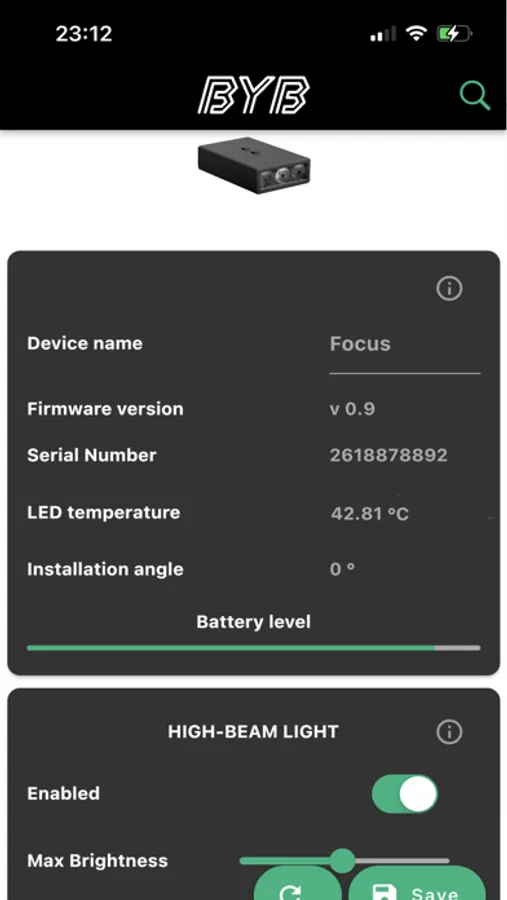 BYB Focus companion app. Through this app, you're able to change the user settings and communicate to your Focus bike light.