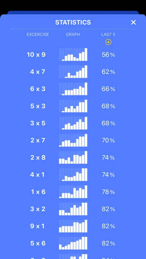 You can review the history and statistics of multiplication tasks, and then use the tasks based on them to continually improve your knowledge.