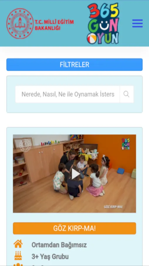 Millî Eğitim Bakanlığı, “365 Gün Oyun” adını verdiği bu uygulamayla yalnızca çocukları değil, her yaştan insanı oyun oynamaya davet etmektedir. Uygulamada 200 oyun bulunmaktadır. Bu oyunların hem videosu izlenebilmekte hem de nasıl oynanacağı adım adım açıklanmaktadır. Oyun açıklamalarında oyunun nerede oynanacağı, hangi yaş grubuna uygun olduğu, kaç kişiyle oynanacağı, süresi, türü, neyle oynanacağı, öğrenme hedefi (oyunun gücü), başka nasıl oynanacağı ve oyunu oynarken dikkat edilecek noktalar gibi oyuna ilişkin açıklamalar yer almaktadır.