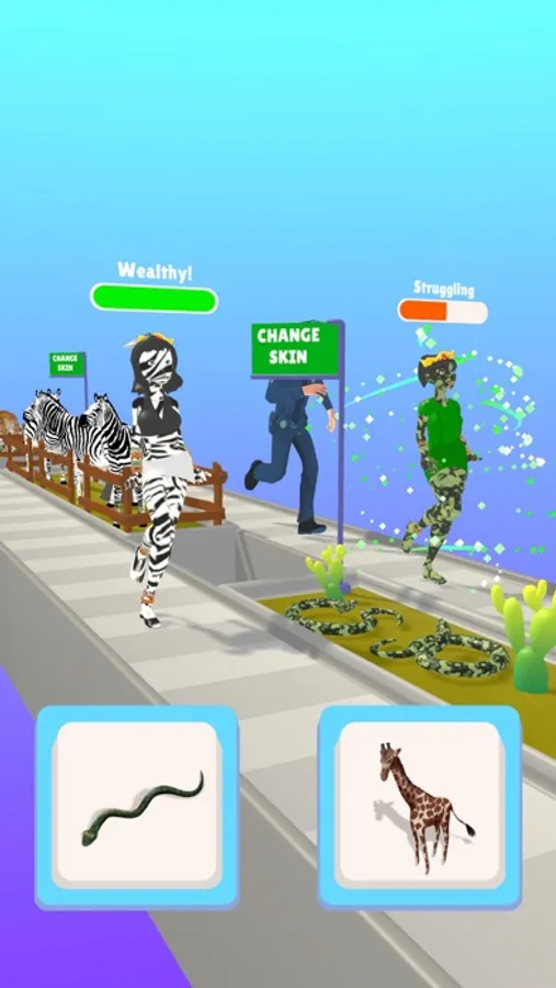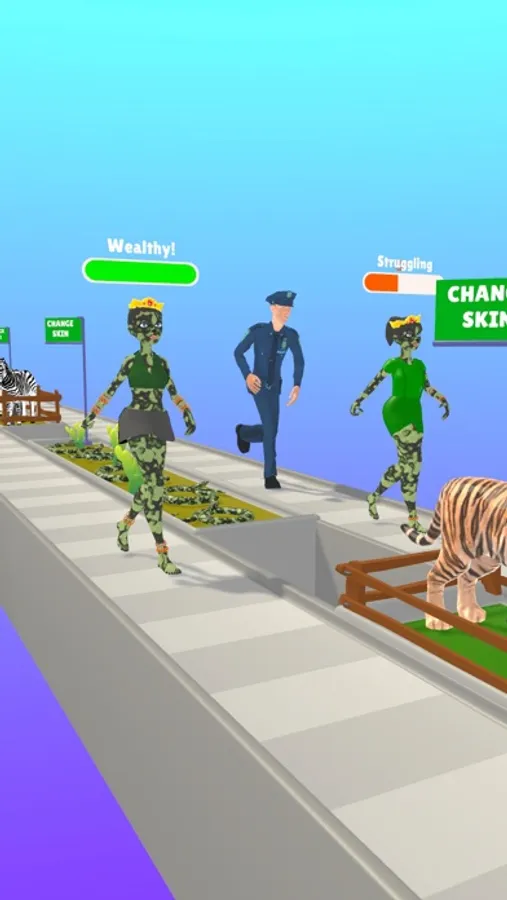 See the forest right there? There are wild animals standing. It’s the perfect opportunity for you to hide. Choose the right animal skin cover to hide away from the police. So that he cannot begin to take back your jewels. You are not the thief that he is after. Try to be better than the other girl. You cannot let her steal all the goods. Police must go after her!
