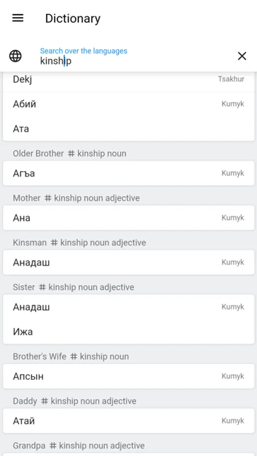 An expandable parallel dictionary for the languages of the Caucasus in English.