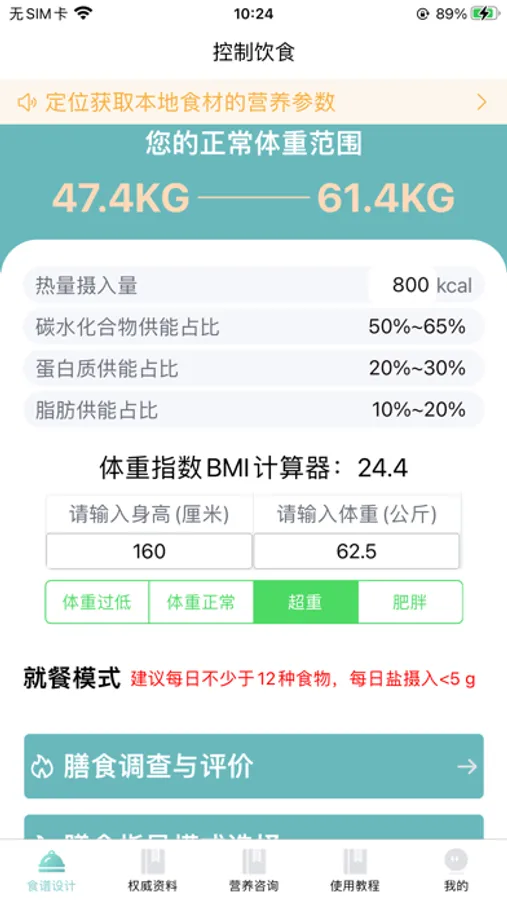 轻食APP 致力于服务广大热爱健康饮食的用户群体,为用户提供合理膳食、提供多种膳食选择方式:食谱设计、热量模式、克重模式,为用户健康提供一种有效的饮食管理方式