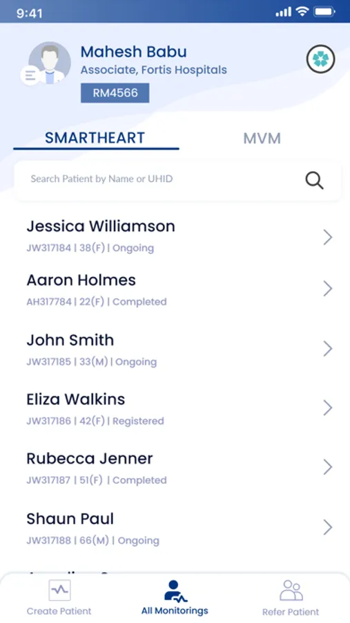 3. One consolidated View encapsulating all patients registered for monitoring with Vigocare