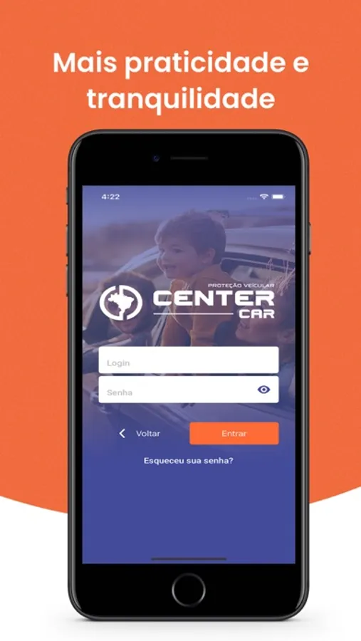 Para começar a usar o aplicativo é só fazer o download gratuito, utilizar seu CPF e senha fornecida pela Center Car.