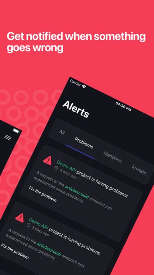 Get instantly notified, via push notifications, whenever a problem happens with all the relevant information about the problem