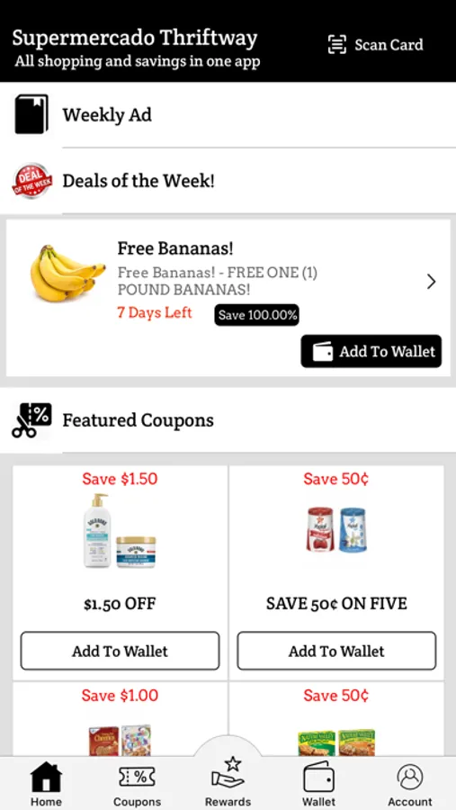 Add digital coupons and specials to your list in the Super Mercado Thriftway app, and
