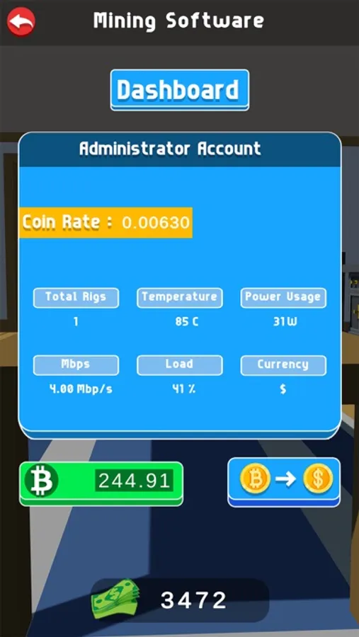 Play a hyper casual style crypto miner, a simulator game with custom mining rig building