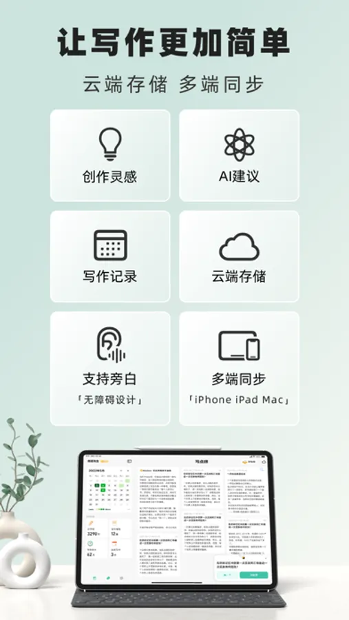 「写点啥」支持 iPhone、iPad 以及 Mac 多个平台使用,并提供 iCloud 数据同步功能,确保您的数据安全及隐私保护。我们还为 iPad 和 Mac 版本增加了快捷键支持,让操作更加便捷。