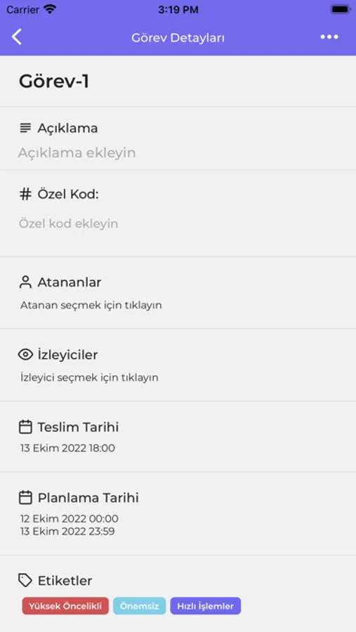 * Her proje için ayrı ayrı etiketler oluşturabilir ve bu etiketler yardımı ile görevleri sınıflandırabilirsiniz.