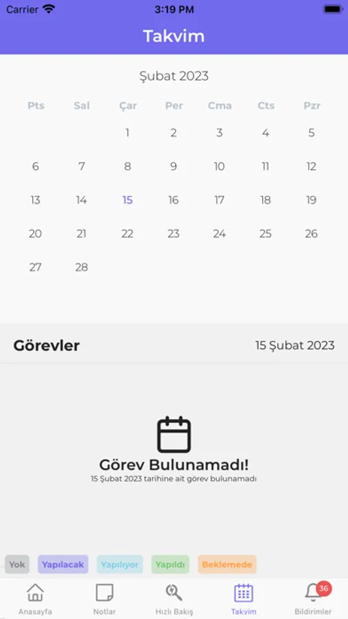 * TaskPano İş Takip Programı içerisinde bulunan takvim modülü sayesinde iş planınızı günlük, haftalık ve aylık olarak takip edebilirsiniz.