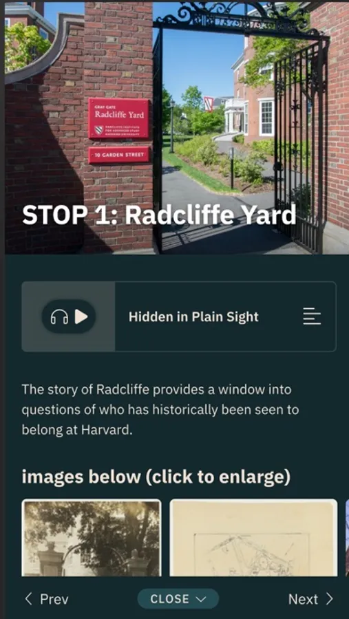 The Harvard & the Legacy of Slavery: Walking Tour Experience explores Harvard University’s entanglements with the institution of slavery through a 10-stop walking tour in Cambridge, MA. The stops illuminate this lesser-known part of Harvard’s history and elevate the stories of Black women and men whose resistance and leadership have shaped the University. In addition to the tour itself, the app offers an opportunity to reflect on the history presented through a selection of curated art. We welcome visitors from all walks of life to learn more about the Harvard & the Legacy initiative and how the history and legacy of enslavement can be traced in our physical environment.