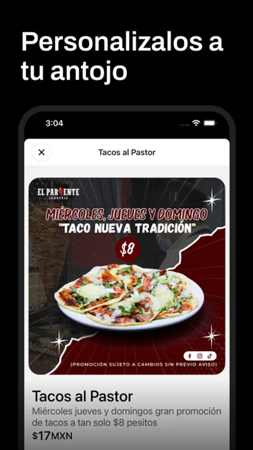 El original sabor del taco al pastor ahora desde tu teléfono móvil.